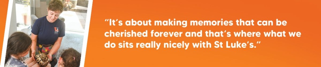 “Engaging with the animals affects people in so many ways. It’s about making memories that can be cherished forever and that’s where what we do sits really nicely with St Luke’s.”